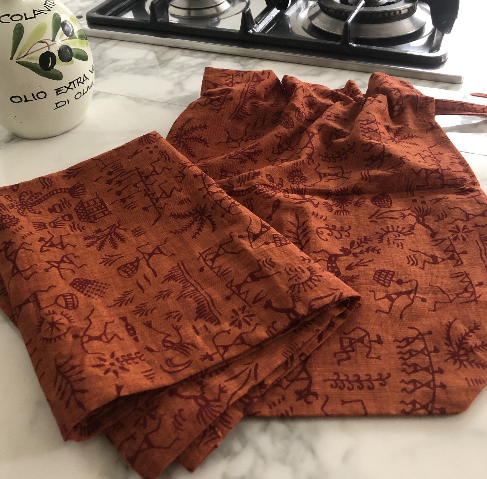 Handmade two piece set, cotton handblock printed fabric, color: burnt orange