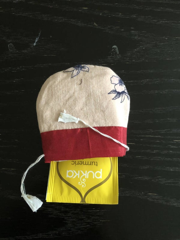 ****A tiny cotton fabric sachet with four tumeric gold tea bags