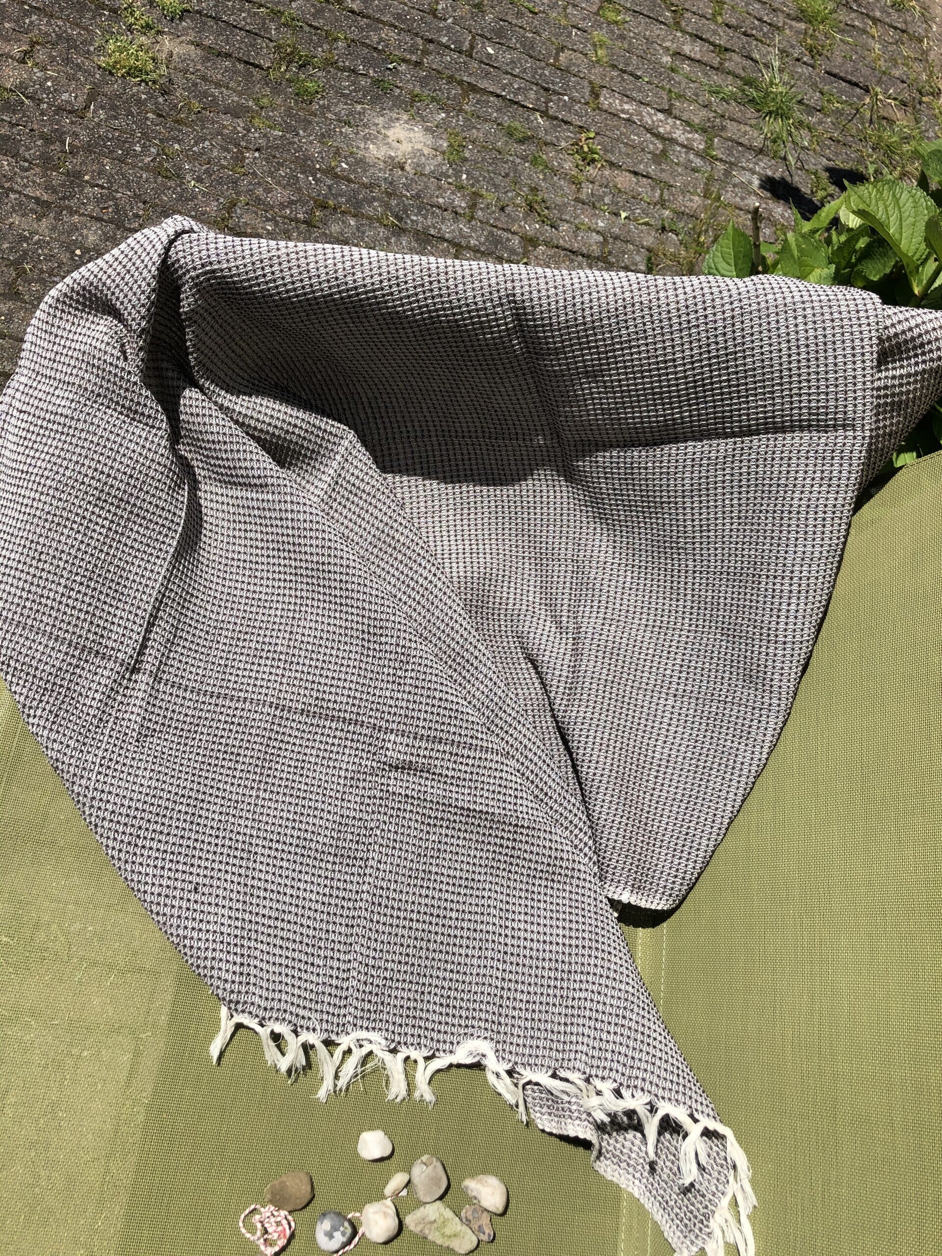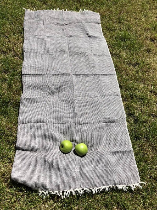 Grijze waffle weave katoenen handdoek, iets kleiner formaat 156cm x 75cm, perfect voor één persoon of voor kinderen!
