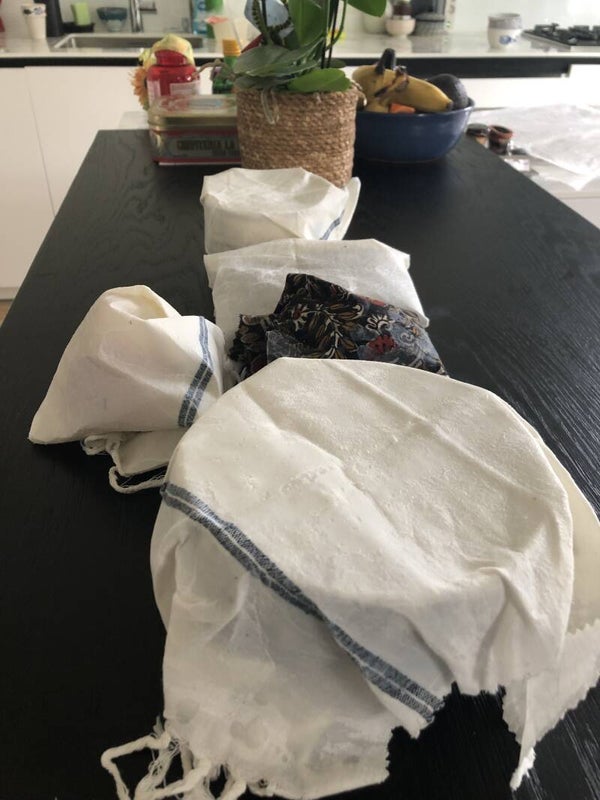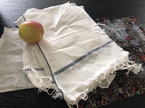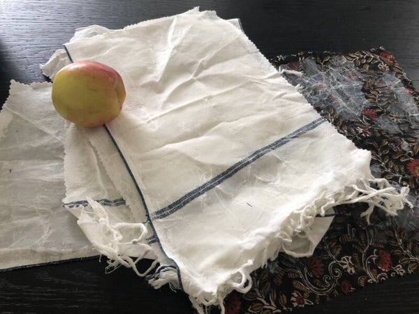 Wanneer je dit om fruit of een schaal wikkelt, zal de warmte van je handen op de was werken en blijft de stof plakken aan alles wat wordt bedekt.