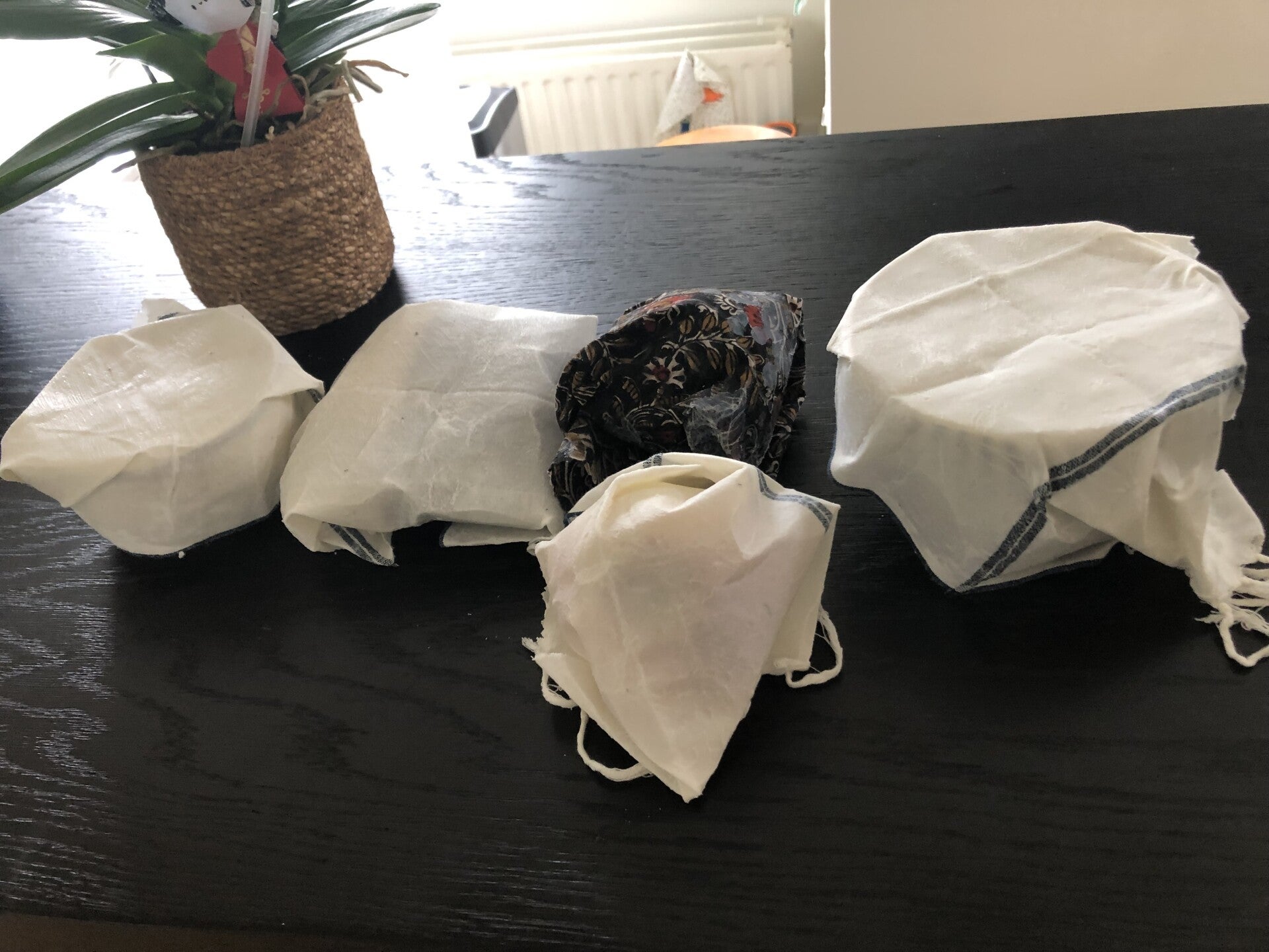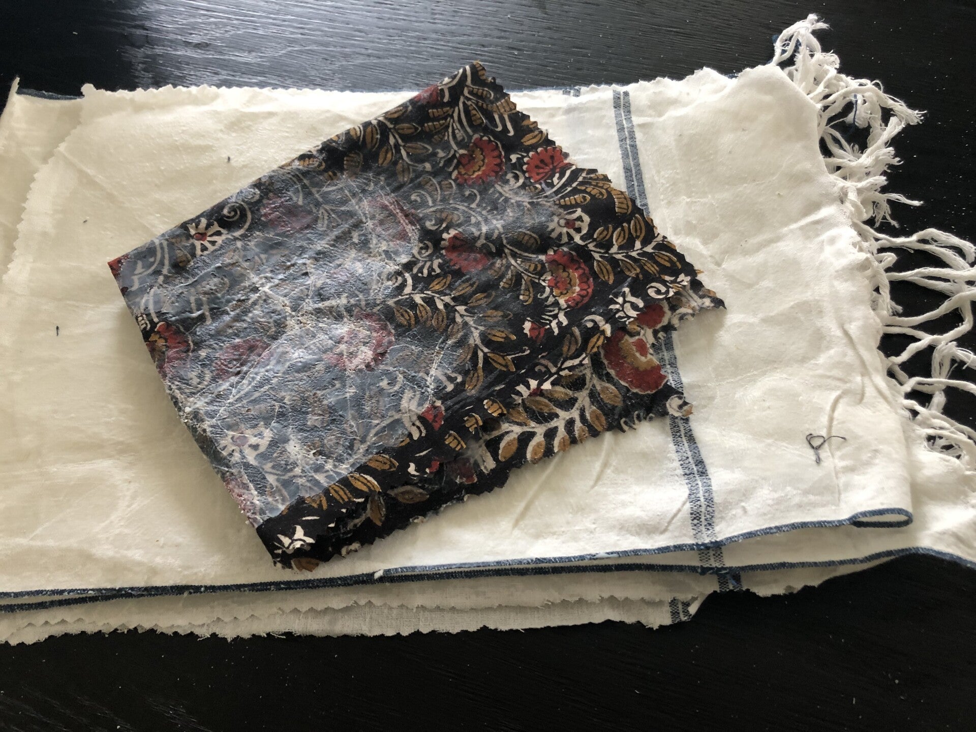 I have coated the fabric with melted soy wax bits (vegan food wraps then!) that has been sourced from a small local farm in the neighborhood that produces soy wax and so many other lovely products in small batches. The soy wax is mixed with a bit of organic coconut oil -- as a result the wraps smell lovely!