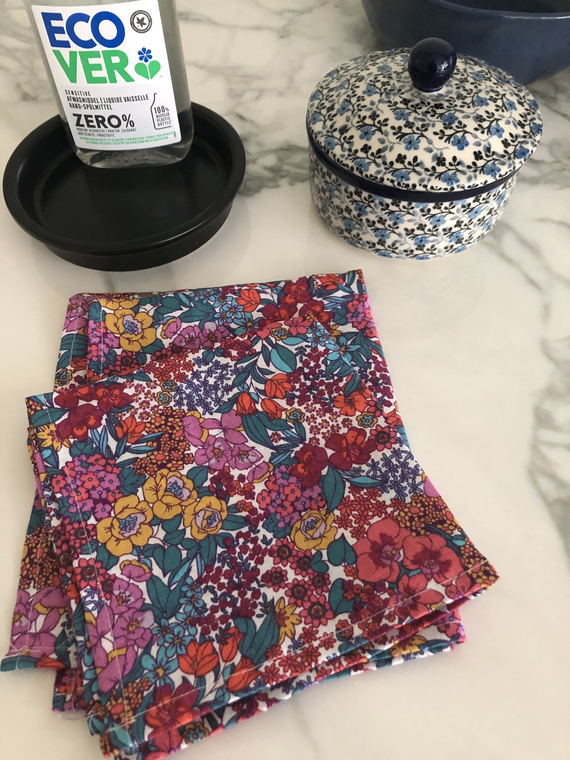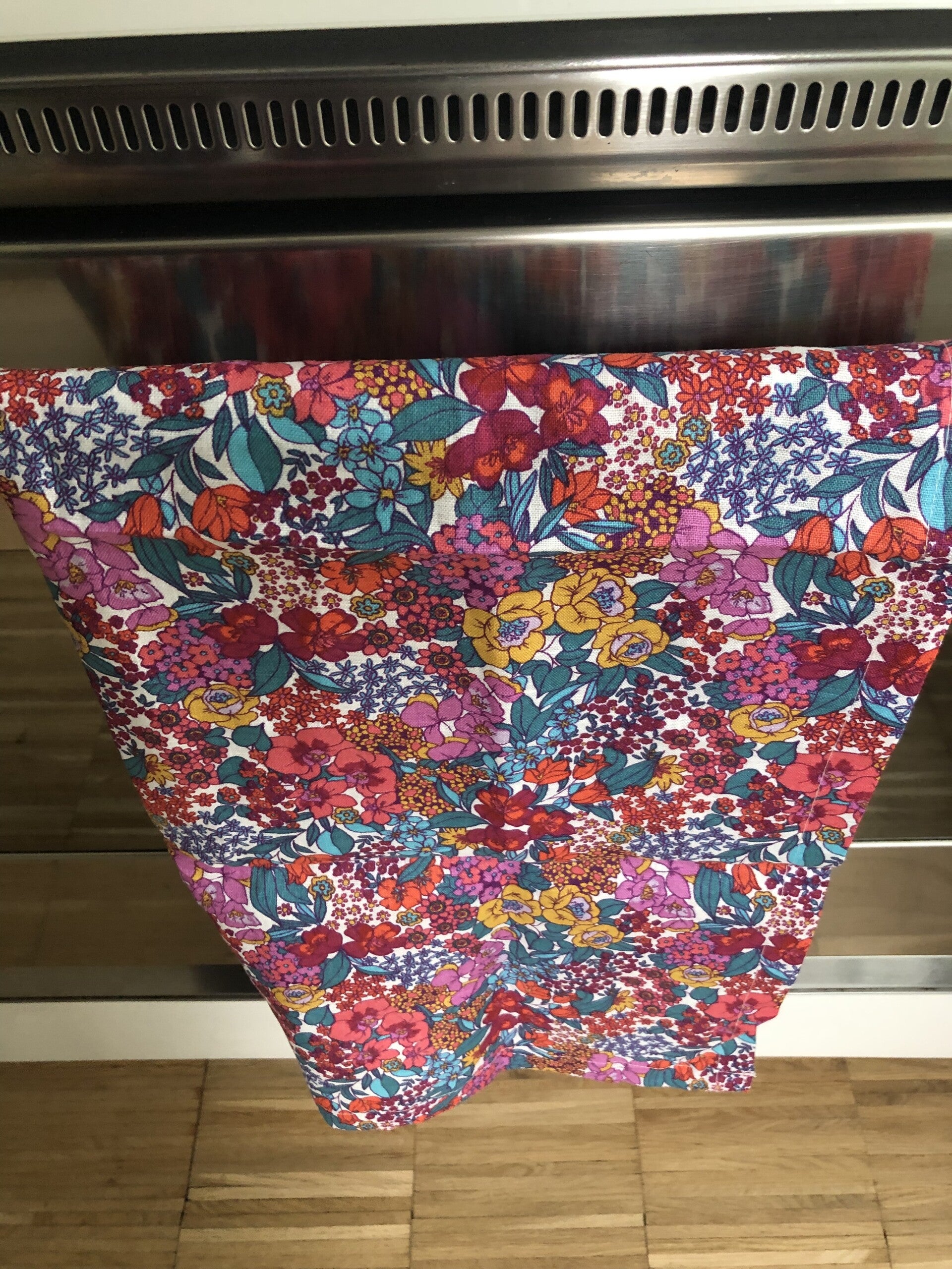 This 3-piece set includes one tea towel and two dish cloths made from the same gorgeous fabric!