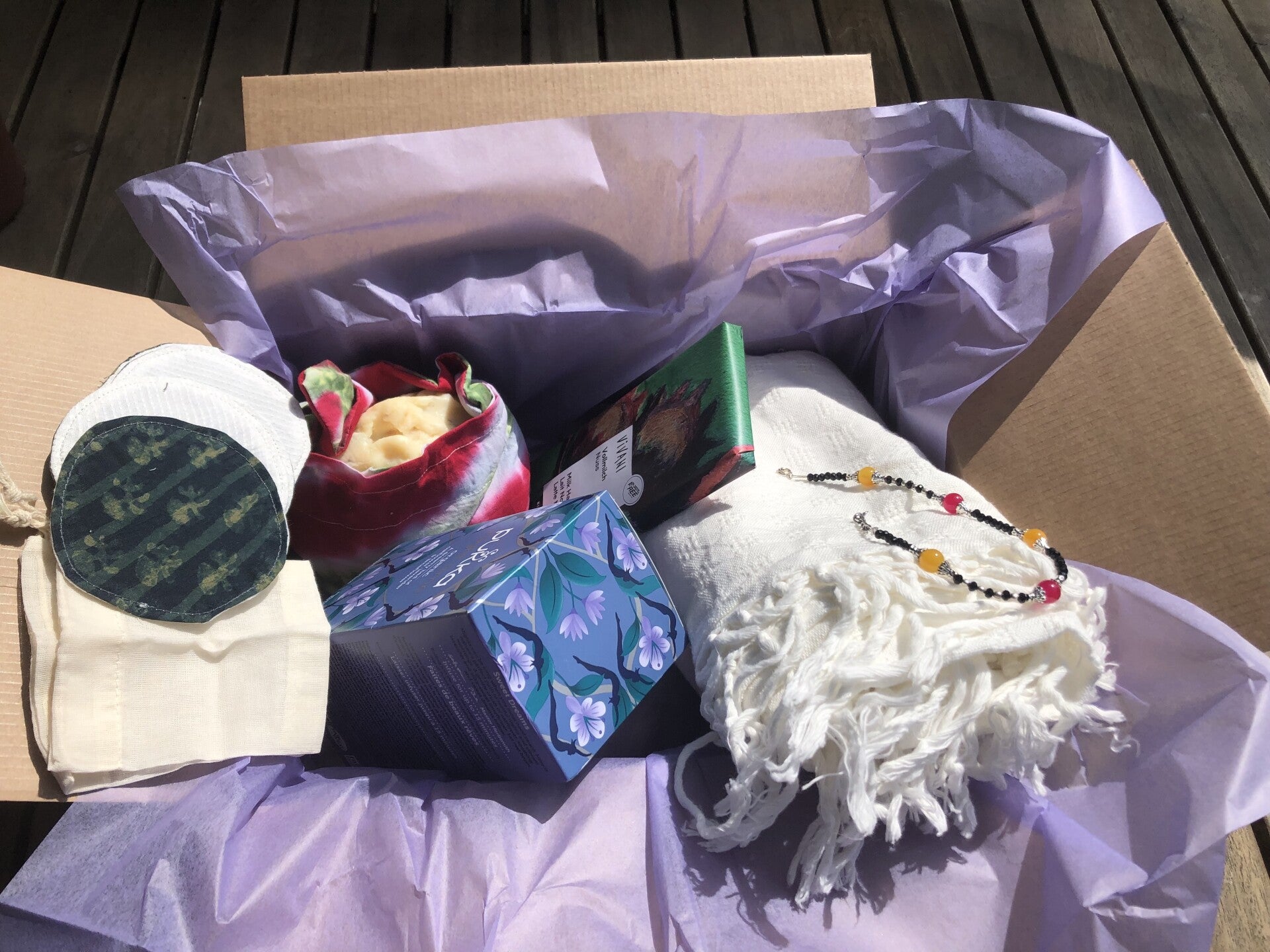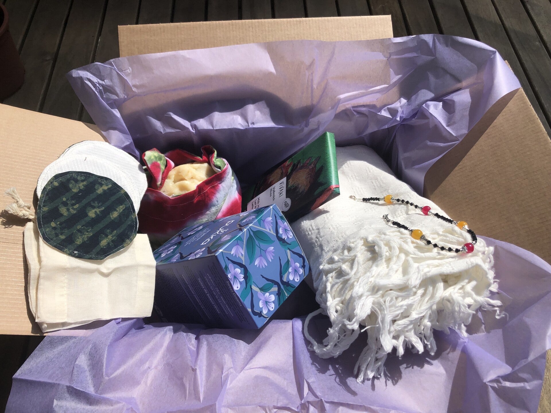 The gift set will be sustainably packaged (the last picture shows how our gift sets are packed) and can be personalized with a handmade gift card with your message on it.