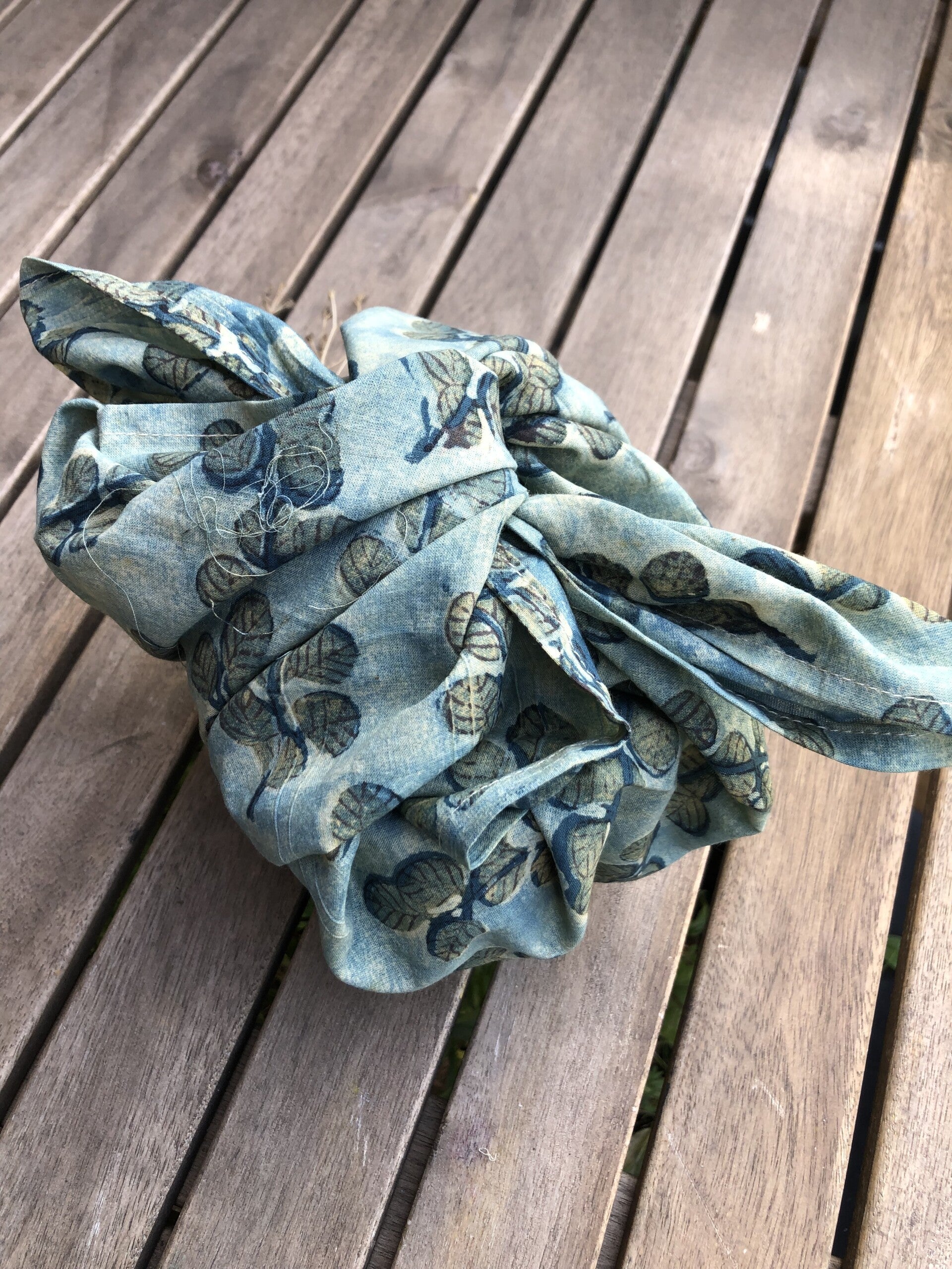 This is a very pretty set of three fabric squares that can be used as reusable fabric gift wrapping, furoshiki-style.